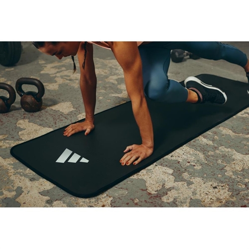 Adidas 10 mm Træningsmåtte er en ekstra komfortabel og tyk træningsmåtte med fokus på stabilitet, holdbarhed og maksimal støtte til gulvbaseret træning. Den unikke, mat sorte farve giver et stilrent og professionelt udtryk, som passer perfekt til både hjemmetræning og brug i fitnesscenter.