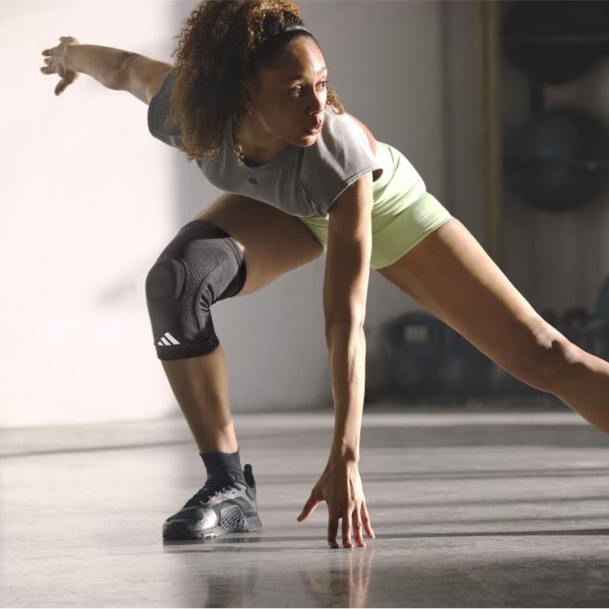 Den integrerede silikone-patellaring stabiliserer knæskallen og hjælper med at holde den korrekt på plads under bevægelse. Samtidig giver de indbyggede “fishbone”-stivere langs siderne af knæleddet ekstra lateral stabilitet, hvilket øger trygheden ved både styrketræning, løb og holdsport.