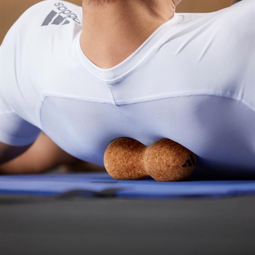 Adidas Dobbelt Kork Massagebold er lavet af 100 % genanvendt kork og er en bæredygtig løsning til dig, der ønsker at mindske plastforbrug og samtidig tage hånd om kroppen. Det unikke design med to bolddele og en let fordybning i midten gør det nemt at rulle langs nakke, rygsøjle, arme og ben – uden at belaste ryghvirvlerne.