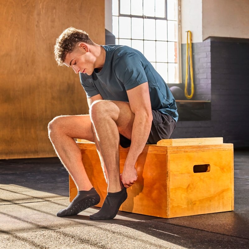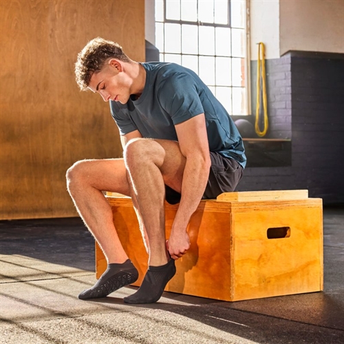 Forhindrer strømperne i at glide ned, så de bliver siddende under hele træningen.