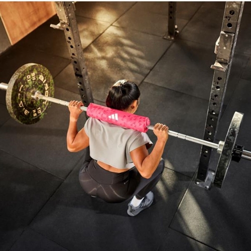 Adidas Vægtstang Nakkepude i pink er en komfortabel og slidstærk nakkepude, udviklet til at gøre tunge løft mere behagelige og sikre. Den er ideel til øvelser som squat, lunges og hip thrusts, hvor vægtstangen ellers kan give ubehag eller irritation mod skuldre, nakke og hofter.