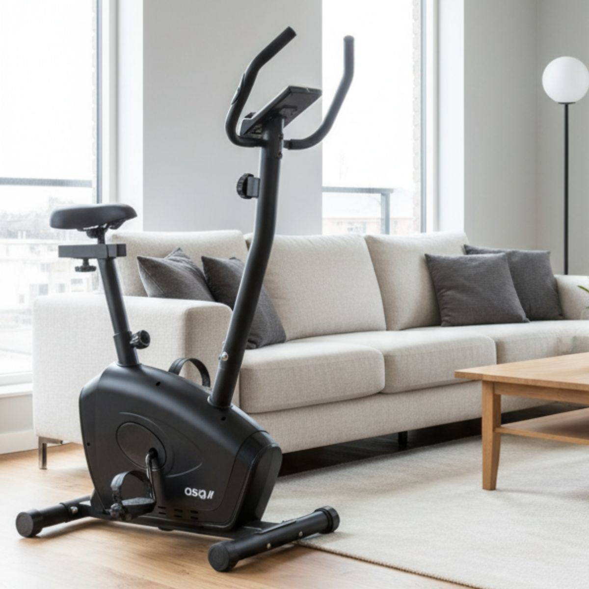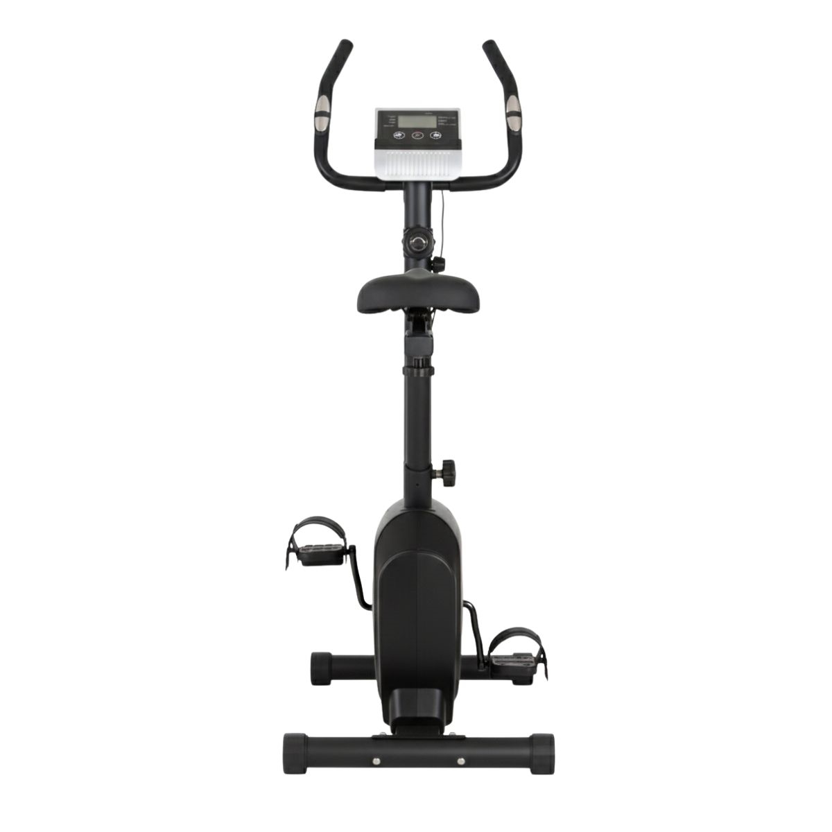 Cyklen er udstyret med et 6 kg svinghjul og en justerbar sadel, som kan tilpasses både i højde og længde for en ergonomisk og komfortabel position. Pulsmåling sker via sensorer i håndtagene, og konsollen kører på batteri – så du slipper for ledninger og strømtilslutning.