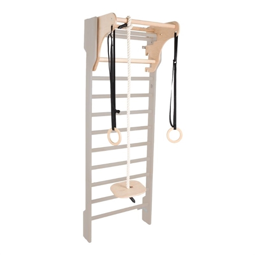 ASG Dremar Træningsribbe 230 × 70 cm er den ideelle løsning til dig, der ønsker en høj, robust og alsidig træningsribbe til hjemmet. Denne model er fremstillet i massivt bøgetræ og tilbyder en imponerende højde på 230 cm, som giver endnu flere øvelsesmuligheder for både voksne og børn. Den elegante træfinish gør ribben nem at integrere i alt fra hjemmetræningsrum til stuer og børneværelser.