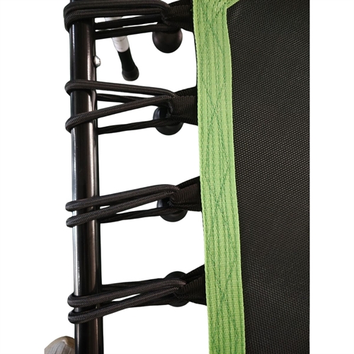Solid ramme og 36 spændstige fjedre sikrer glat og stabil hoppebevægelse.