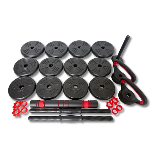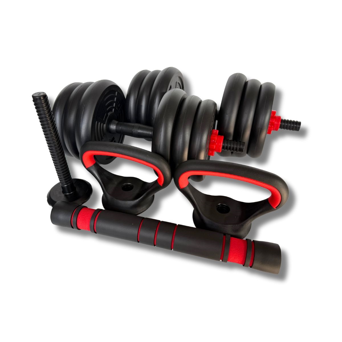 Det alsidige ASG Justerbare Vægtsæt på 20 kg giver dig alt, hvad du har brug for til en omfattende hjemmetræning. Med dette sæt kan du nemt skifte mellem forskellige typer styrketræning, herunder kettlebell-øvelser, håndvægtstræning og vægtstangsløft.