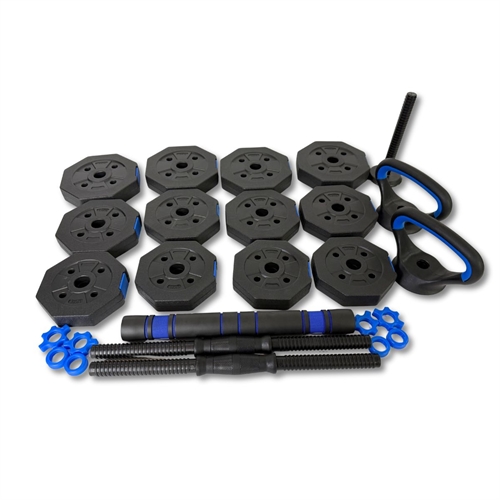 ASG Justerbart Vægtsæt 20 kg – Blå giver dig maksimal træningsfrihed i én kompakt løsning. Med dette 3-i-1 sæt kan du træne som du vil – hvad enten det er med håndvægte, vægtstang eller kettlebell. Ideelt til alsidig hjemmetræning, hvor plads og variation er vigtig.