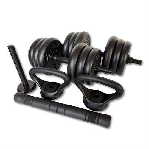 Det alsidige ASG Justerbare Vægtsæt på 20 kg giver dig alt, hvad du har brug for til en omfattende hjemmetræning. Med dette sæt kan du nemt skifte mellem forskellige typer styrketræning, herunder kettlebell-øvelser, håndvægtstræning og vægtstangsløft.