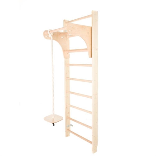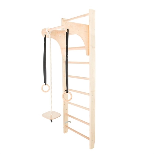 Denne træningsribbe skiller sig ud med sit naturtræslook, sin høje konstruktion og fleksible tilbehørsmuligheder. Den passer perfekt til hjem, hvor både æstetik og funktionalitet er vigtige — og hvor ribben skal bruges af hele familien til både træning og leg.