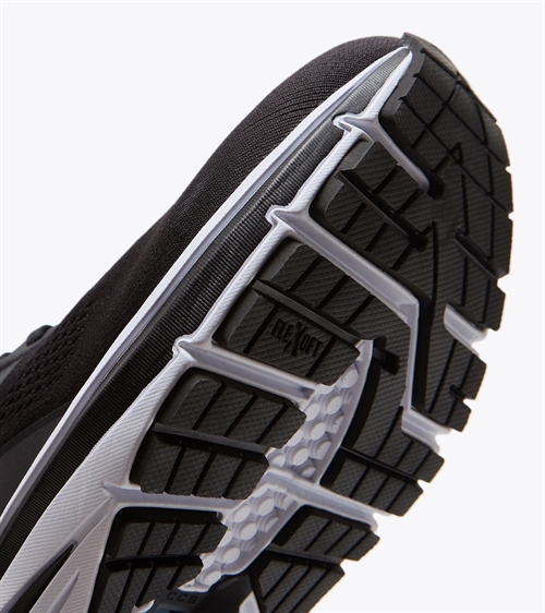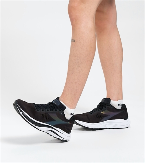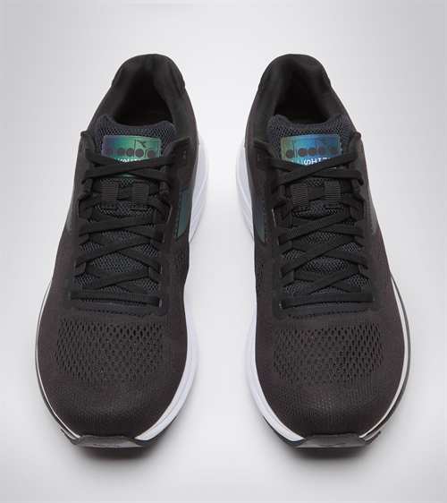 Mythos Blushield 7 vortice HIP har konstruerede, tofarvede luftmesh nylonoverdel og iriserende detaljer, EVA elastomer indersål og aftagelig ortholite. Dæmpning er sikret takket være den lette EVA-mellemsål med Blushield-teknologi over hele foden og en sål, der plejer hele foden: blæst flexoft foran og den slidstærke Duratech 5000- blanding på hælen.
