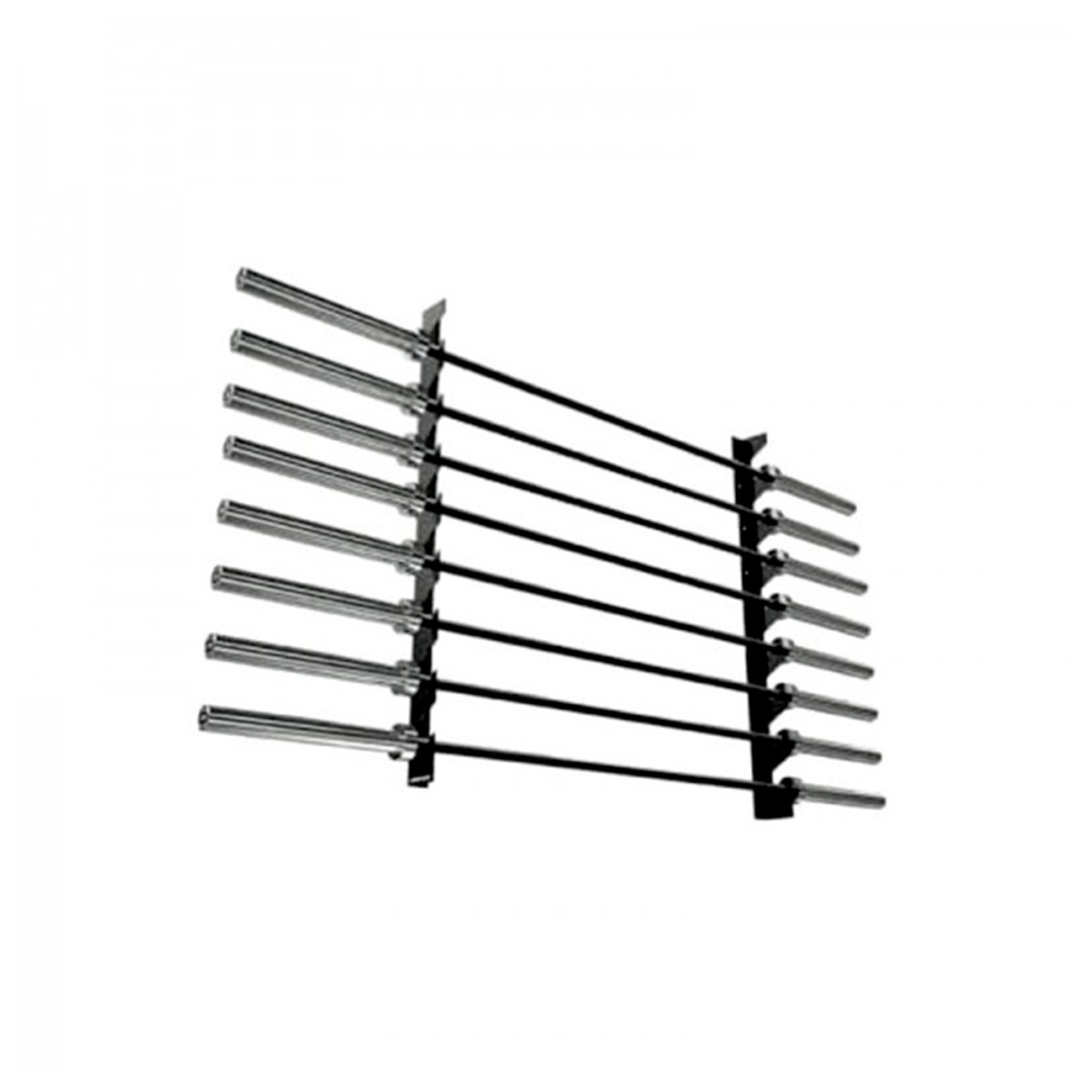 Rummet er indrettet til opbevaring af op til otte vægtstænger, så dit træningsområde holdes organiseret.