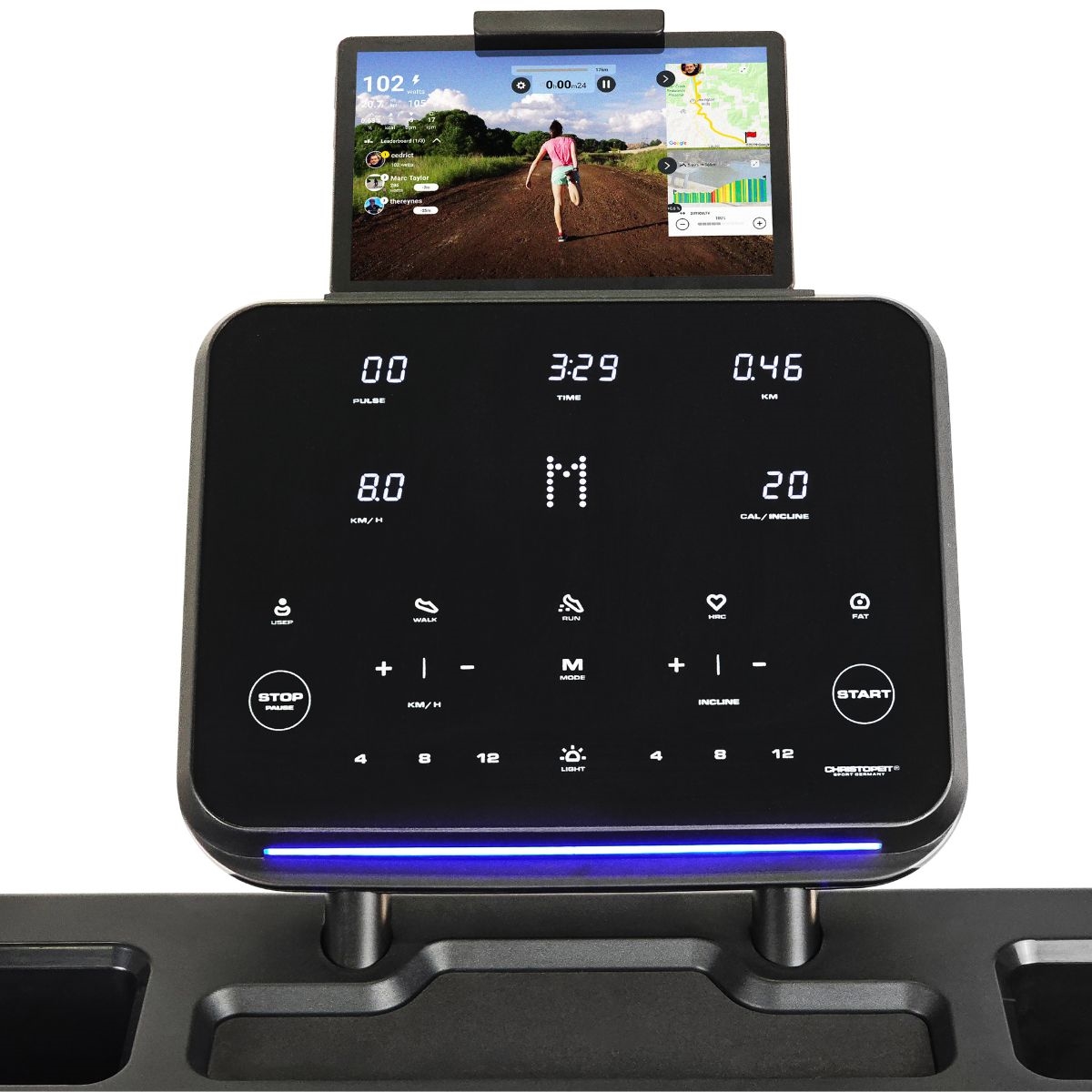 Nyd musik eller træningsapps direkte fra løbebåndet.