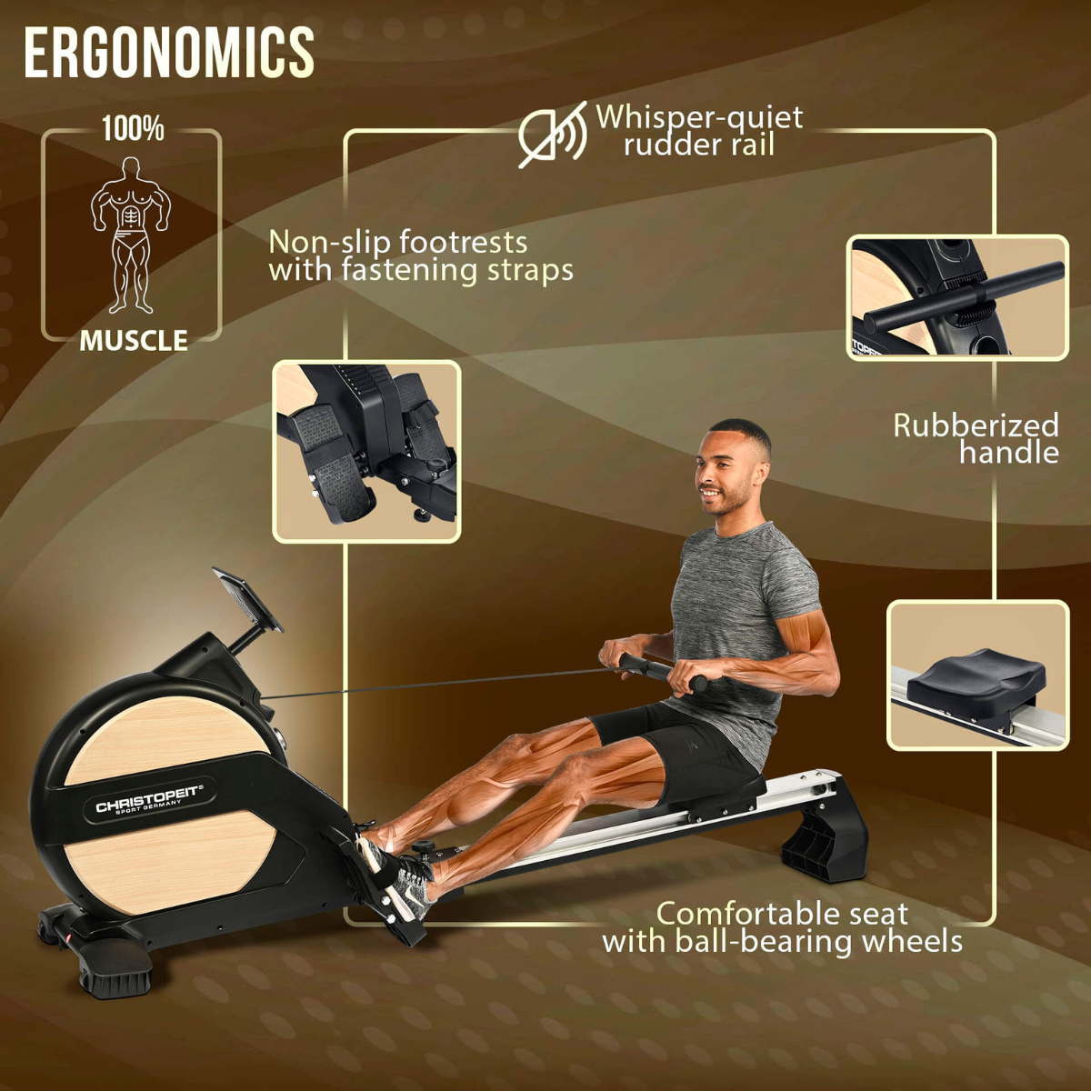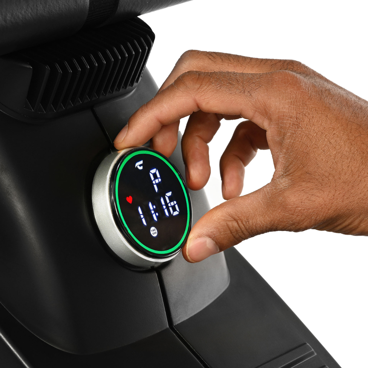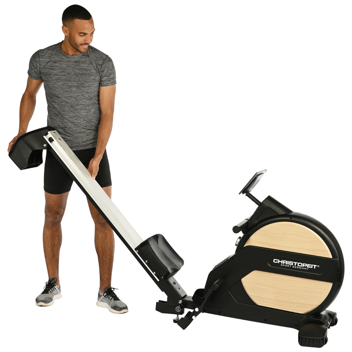 Den stabile aluminiumsskinne, komfortsæde og ekstra langt træk giver en glidende, naturlig bevægelse. Samtidig giver LED Smart Control dig overblik over intensiteten med farvekoder, så du altid ved, hvor hårdt du arbejder. Når træningen er færdig, kan romaskinen foldes sammen for pladsbesparende opbevaring.