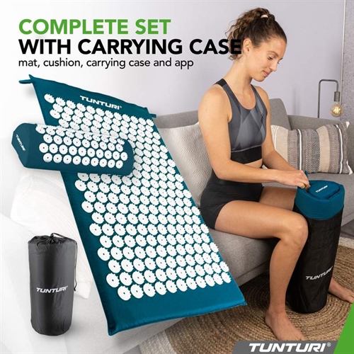 Tunturi Akupressurmåtte med Pude – Petrol Blåe – For dyb afslapning og naturlig smertelindring