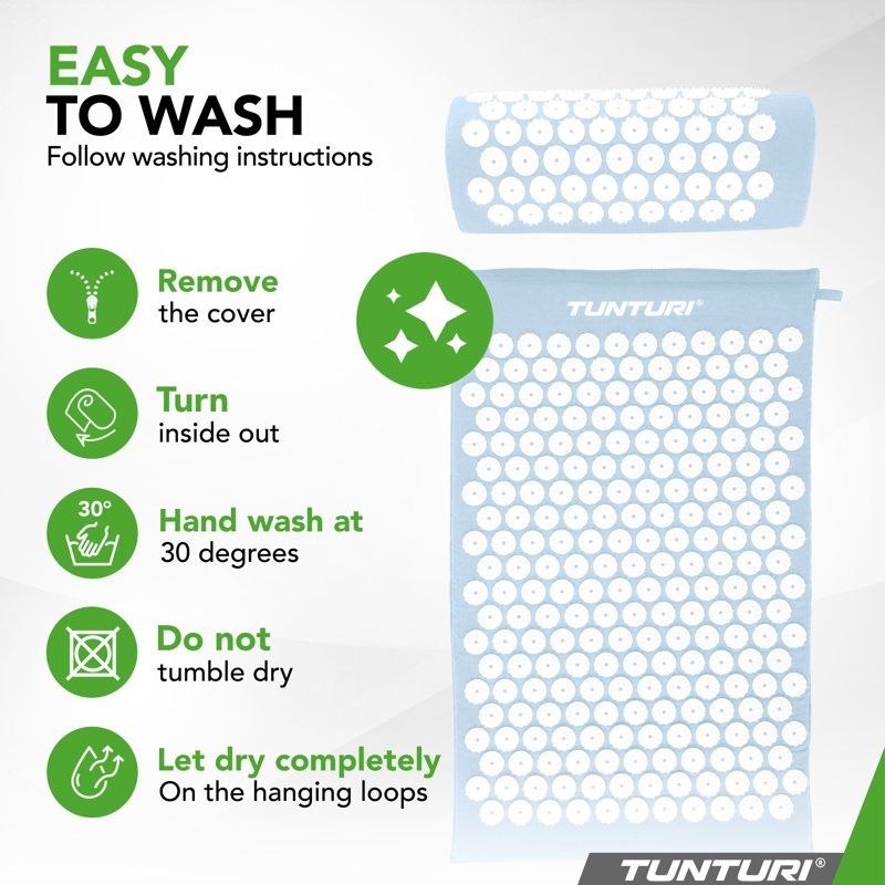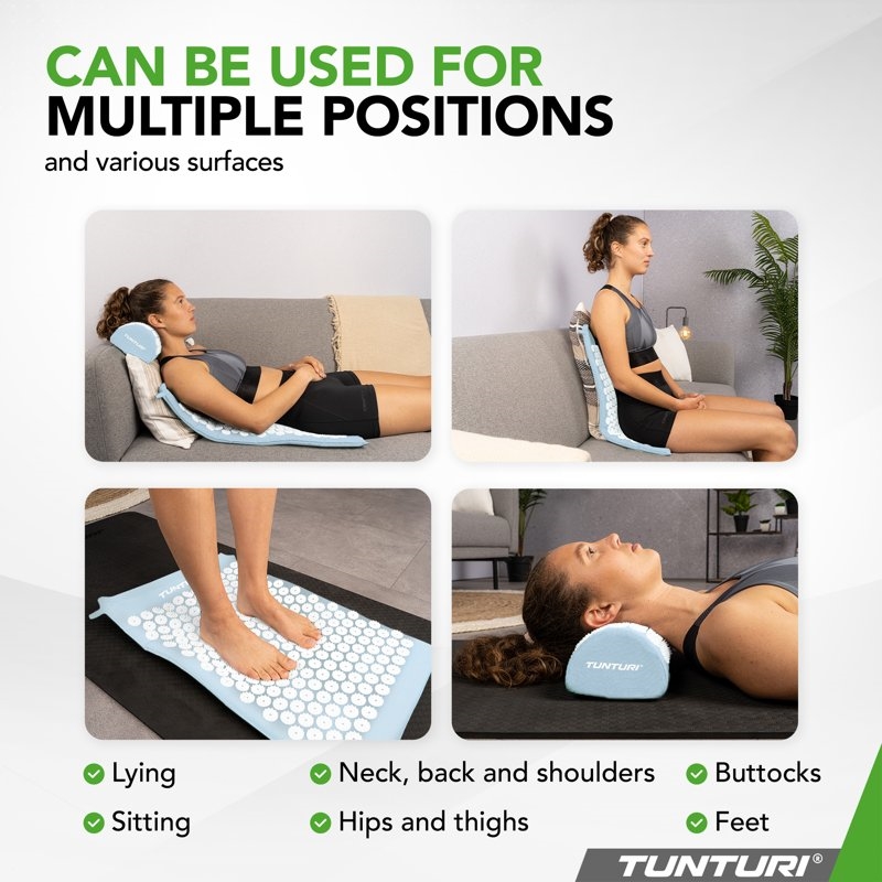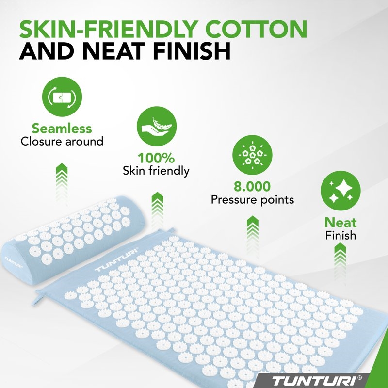 Tunturi Akupressurmåtte med Pude – Lys Blå | Komplet sæt til afslapning og smertelindring