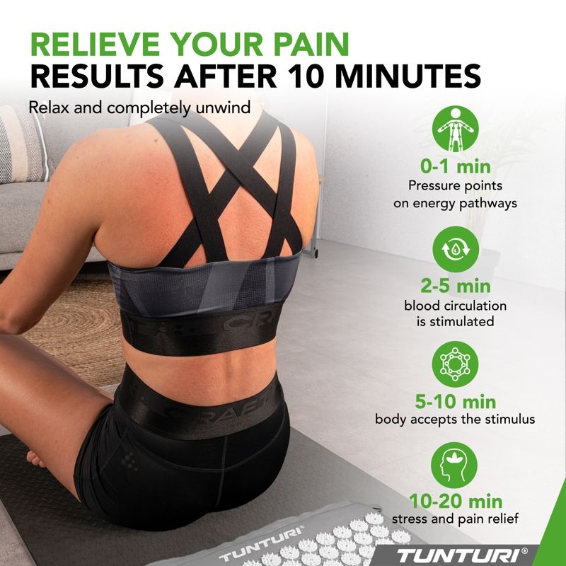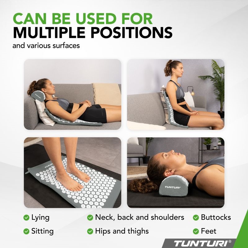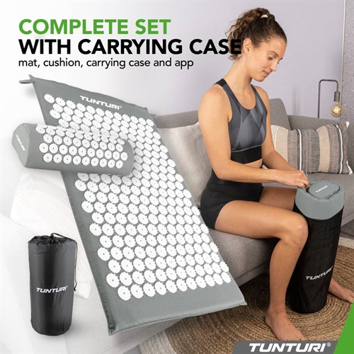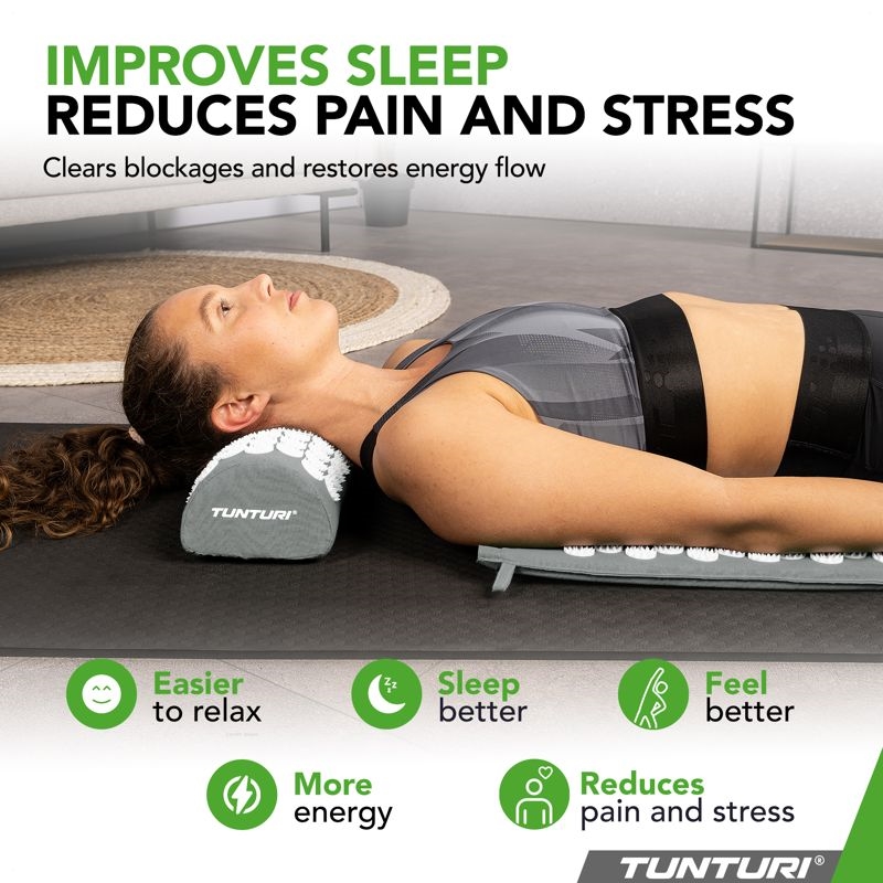 Tunturi Akupressurmåtte med Pude – Grå | Naturlig afslapning og smertelindring