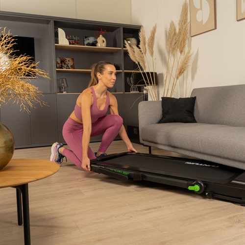 Tunturi Cardio Fit T10 er et superkompakt og moderne løbebånd, der giver dig effektiv træning uden at fylde i hjemmet. Med en hastighed på op til 12 km/t, 7 programmer og Bluetooth får du en fleksibel og brugervenlig løsning – ideel til både gang, jogging og let løb. Det ultraslanke design gør den nem at gemme under sengen eller bag et skab, og løbebåndet er klar til brug på få minutter.