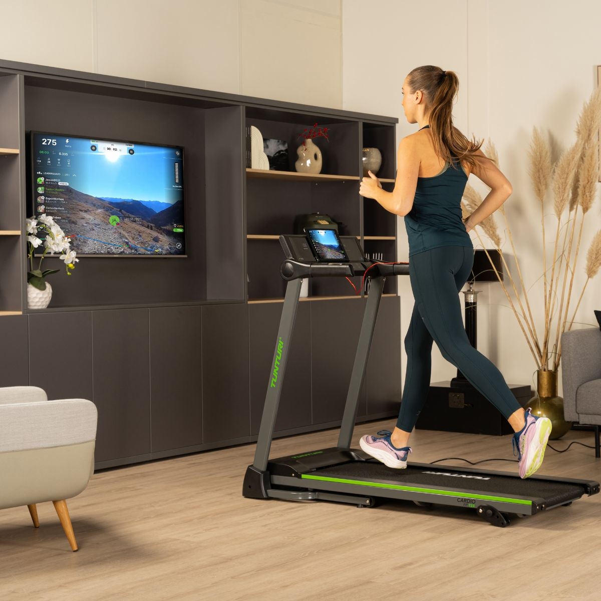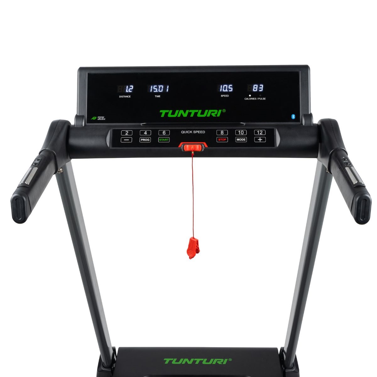 Det justerbare LED-display viser alle dine vigtigste træningsdata, og Bluetooth giver mulighed for at koble løbebåndet til populære træningsapps som Tunturi Routes og Zwift.