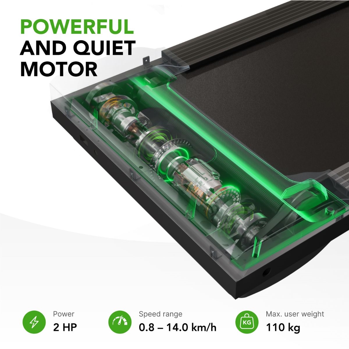 Løbefladen er støddæmpet og komfortabel, og den kompakte konstruktion gør, at løbebåndet er nemt at flytte og opbevare.