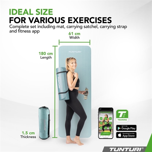 Leveres med en bæretaske og rem, så du nemt kan tage din måtte med til træning eller opbevare den derhjemme.
