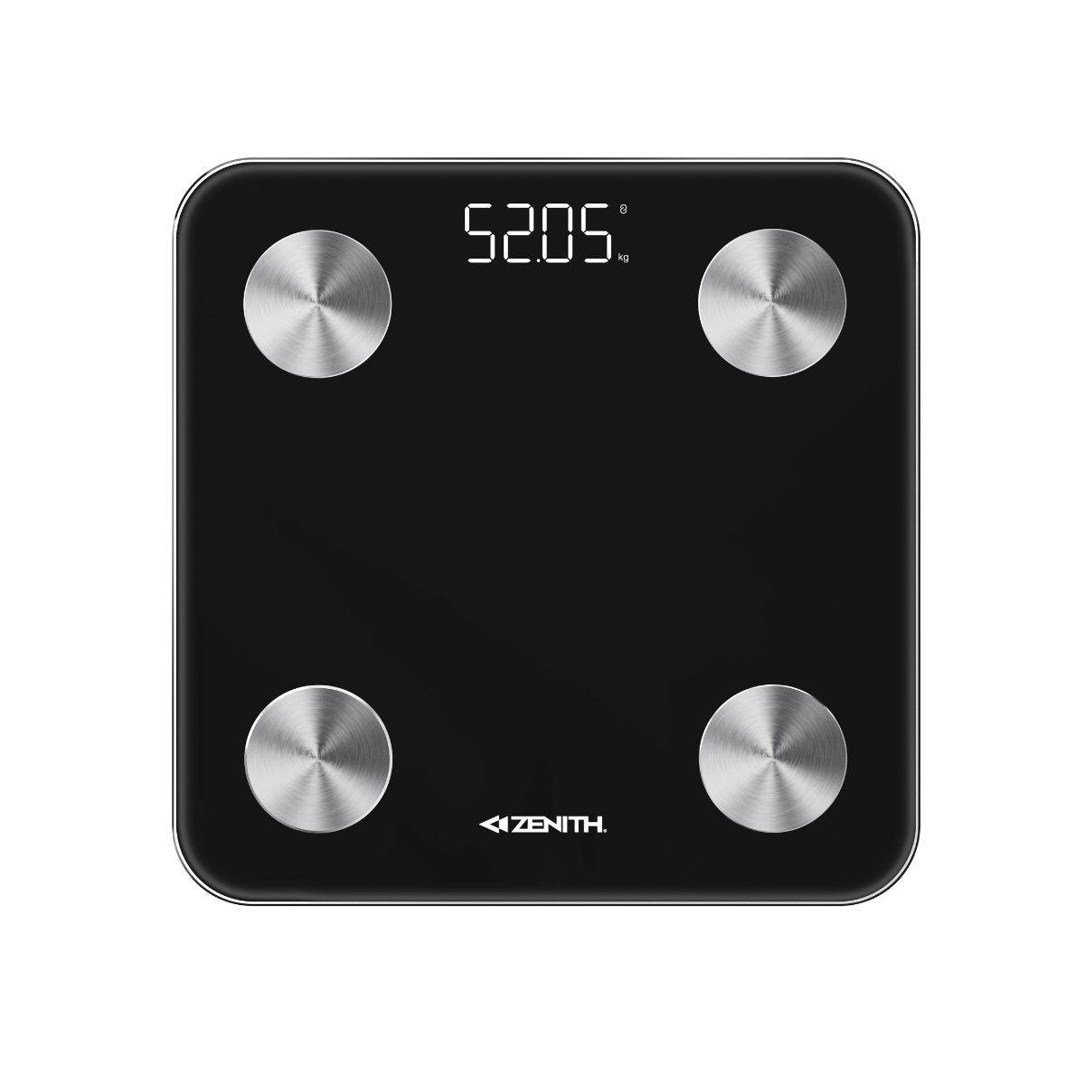 Zenith Smart Badevægt – Sort kombinerer avanceret teknologi, præcise målinger og stilrent design i én elegant løsning til hjemmet. Vægten måler hele 14 forskellige kropsdata via BIA-teknologi, herunder fedtprocent, muskelmasse, BMI, kropsvæske og meget mere.